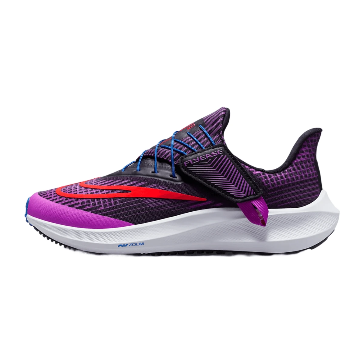 Let the Nike Pegasus FlyEase, a balanced and energized ride for any run, help you ascend to new heights. A supportive sensation helps keep your foot contained, while underfoot Air adds a pop to your step as you transition from heel to toe. Nike FlyEase technology acts as a strap, helping secure the fit. Your trusted workhorse with wings is back. Time to fly.
